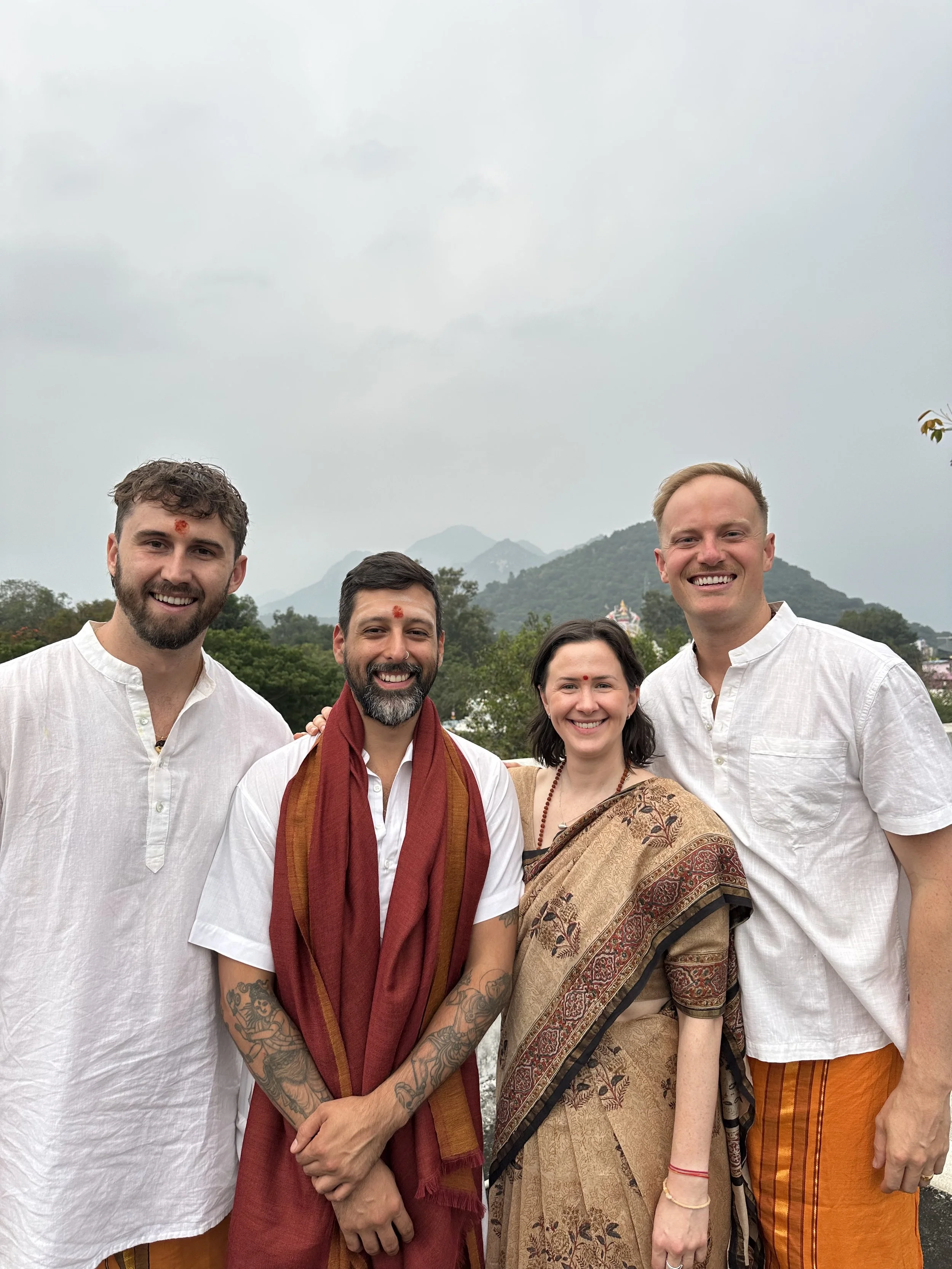 Trika Kula is stewarded by Nataraj, Vishnudev, and Jayden, and rooted in the streams that have shaped their lives: